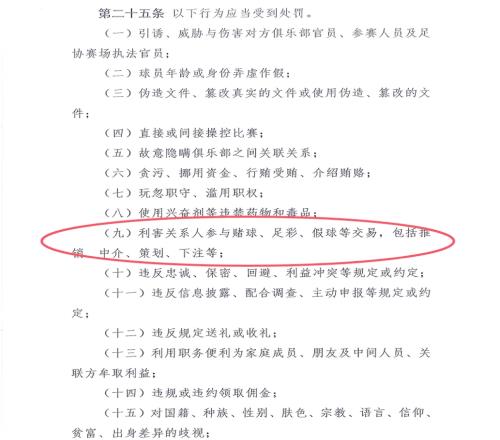 但中国足协对吴飞的处罚依据的《中国足球协会道德与公平竞赛委员会工作规则(试行)》第二十五条中规定:利害关系人参与赌球、足彩、假球等交易,包括推销、中介、策划、下注等,该行为应当受到处罚。
