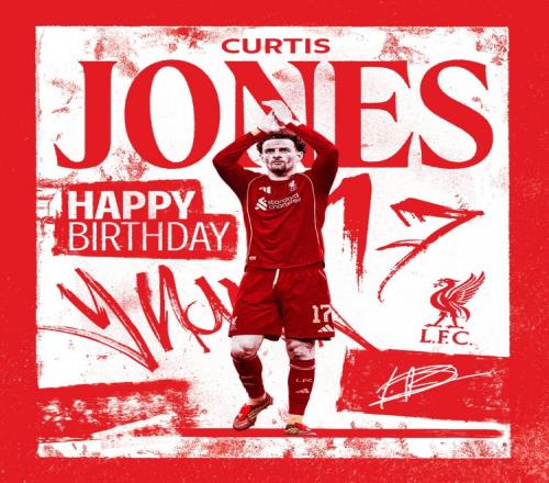 利物浦官方社媒晒出柯蒂斯·琼斯的生日海报,配文:“生日快乐,柯蒂斯!”